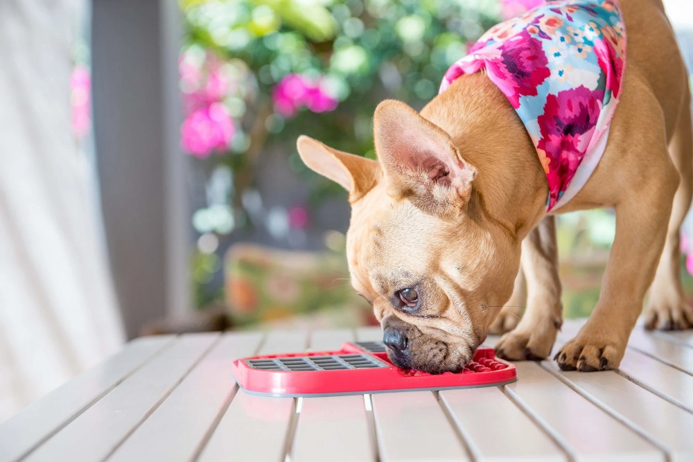A LickiMat®-ek különleges textúrája úgy lett kialakítva, hogy kutyák és cicák is használhassák.