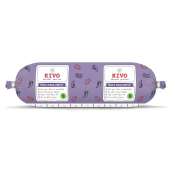 80% ló, 20% nyúl (65% hús: lóhús, nyúlhús; 20% belsőségek: lóvese, lótüdő, lószív, lómáj, nyúlvese; 15% csont)